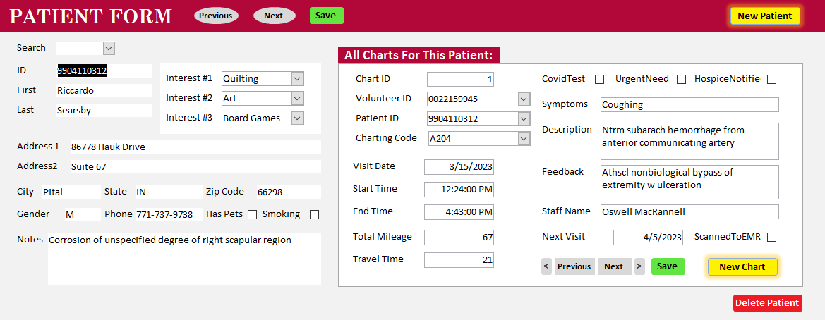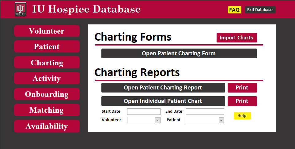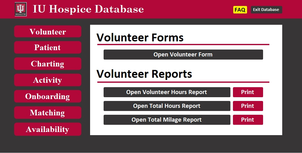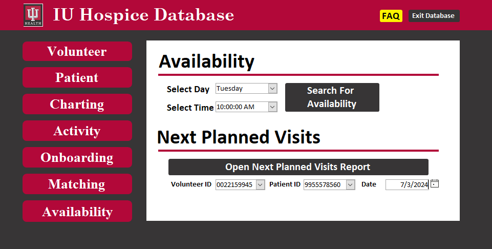 In the capstone project of Honors Computer in Business, this case tasked my team of 5 peers with creating a user-friendly database system using Microsoft Access and Excel for IU Health-Hospice. Over 3 rounds of presentations and exhaustive QnAs, including to the head of IU Health-Hospice, my team finished in a close 2nd place amongst over 50 teams.